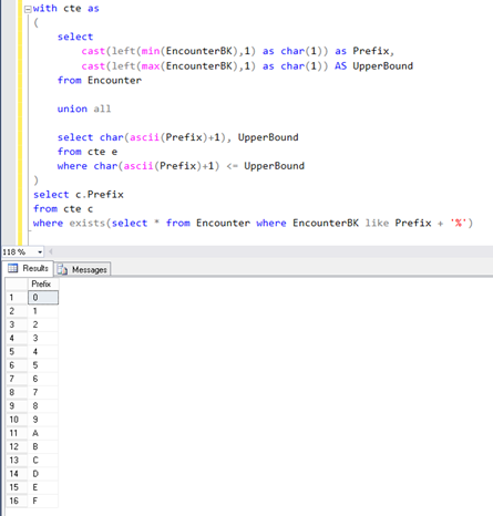 Here we deal with a request made based on the min and max values, and their first symbols. To generate all sorts of combinations, you can go through the table and check if those values are there. This will be quite effective as you can use search by index.