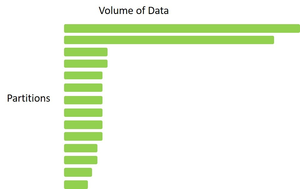 Surely, such a distribution isn’t effective as a system will process small partitions much quicker than the remaining huge ones, which can last for hours. Pay special attention to the choice of a key that you’re going to use to distribute data (we still recommend the integer key with excellent distribution!).