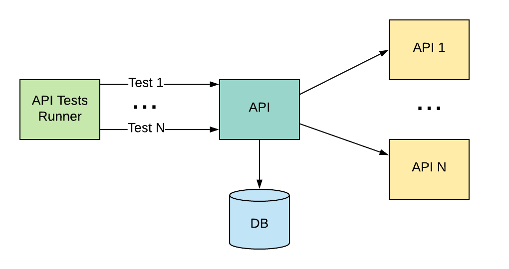 4. Tests runner will use the temp API to run all API tests. API tests can mock all external dependencies in the source code or just simulate other services like SoapUI tool can do.