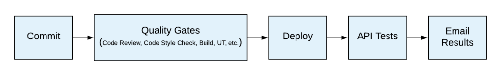 2. Then it goes through all quality gates including code review, code style check, build, unit tests, etc.